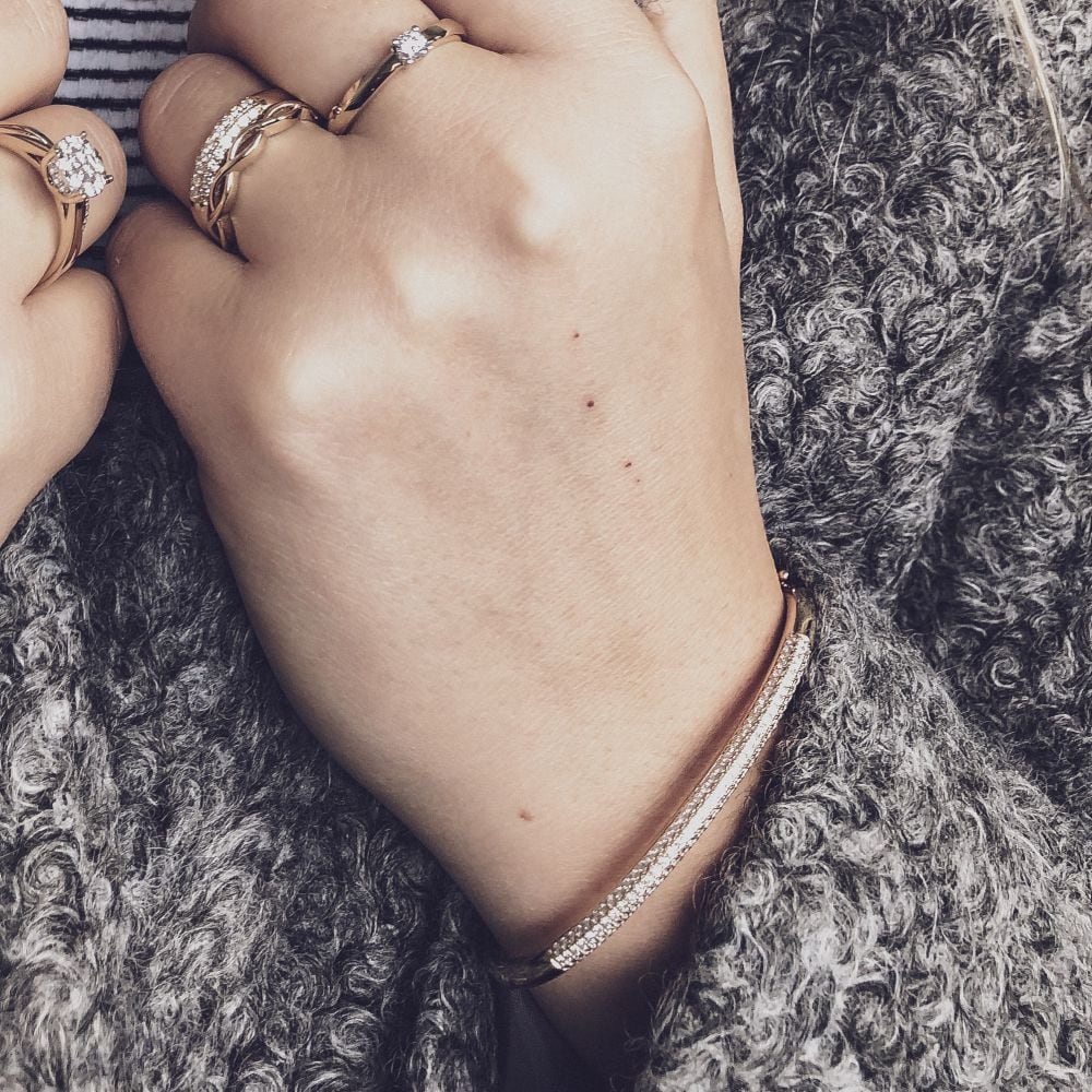 Schitterende stijve armband gezet met diamant in pavézetting.