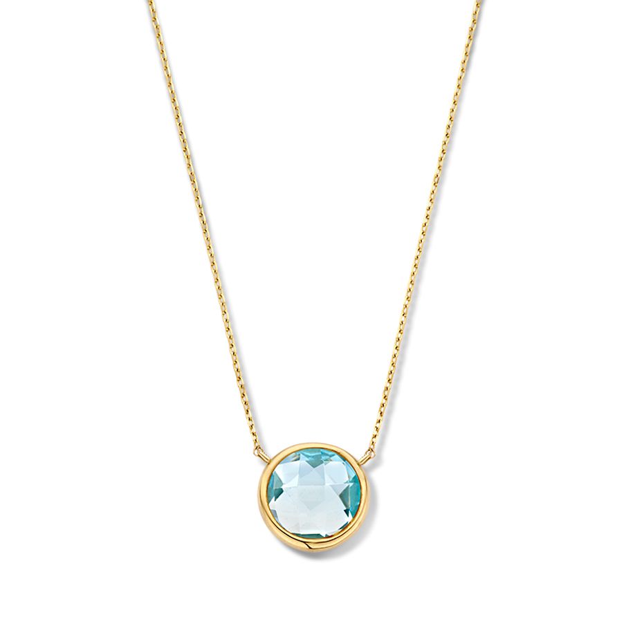 Collier geelgoud blauw topaas