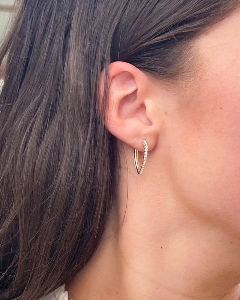 Geelgouden oorringen in asymmetrisch model, aan de voorzijde gezet met diamant.