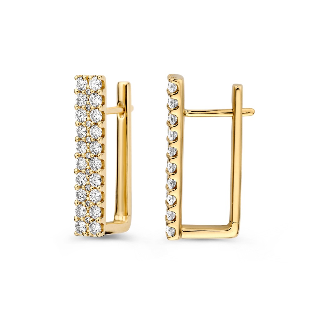 Stijlvolle gouden oorringen gezet met fonkelende diamanten. Dankzij het strakke ontwerp, zijn de oorbellen echt een eyecatcher in het oor.