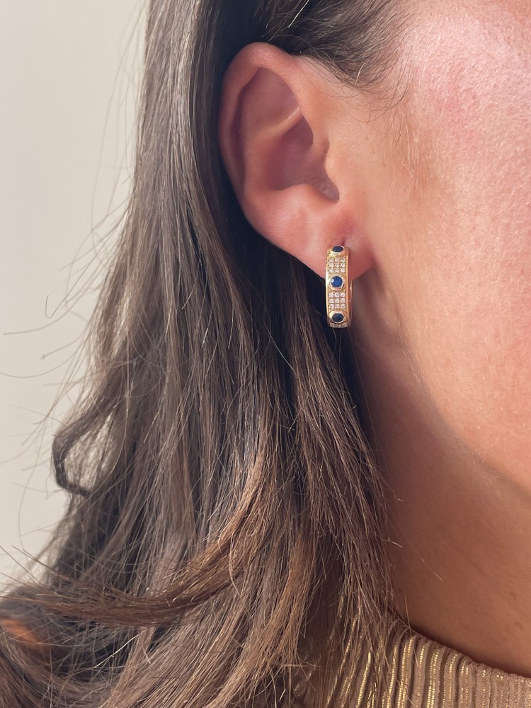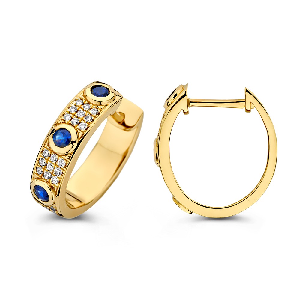 Vergelijkbaar met Oorringen geelgoud briljant+saffier