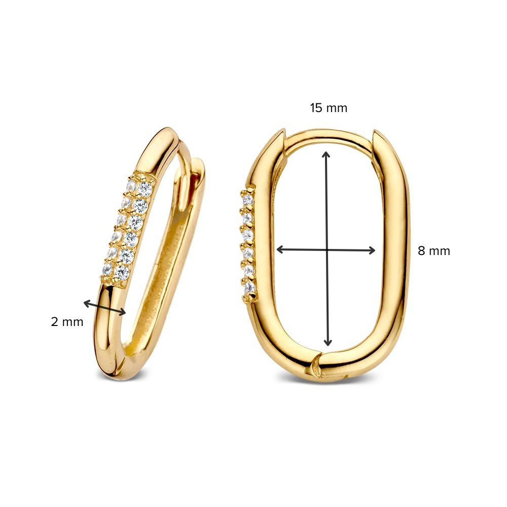 Geelgouden oorringen met ovale vorm en fijne zirkonia's.