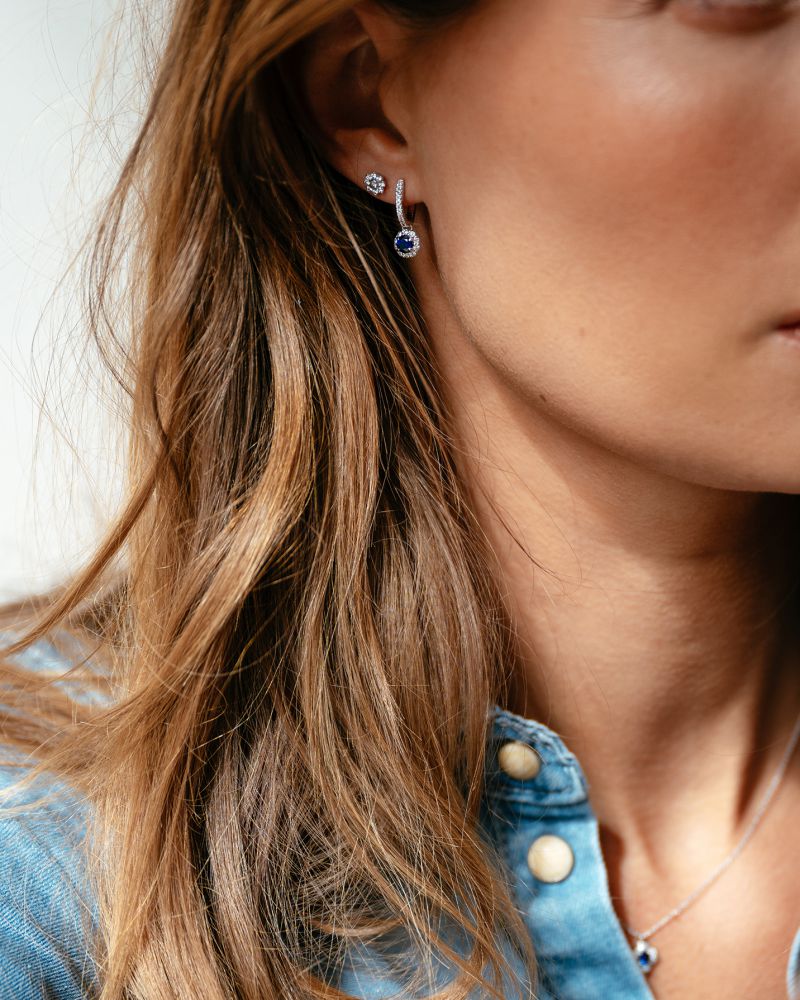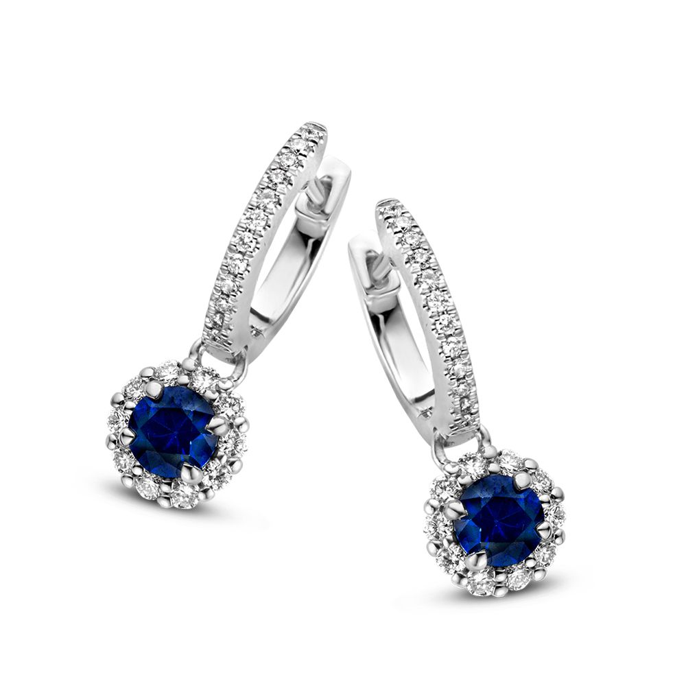 Oorringen witgoud briljant+saffier