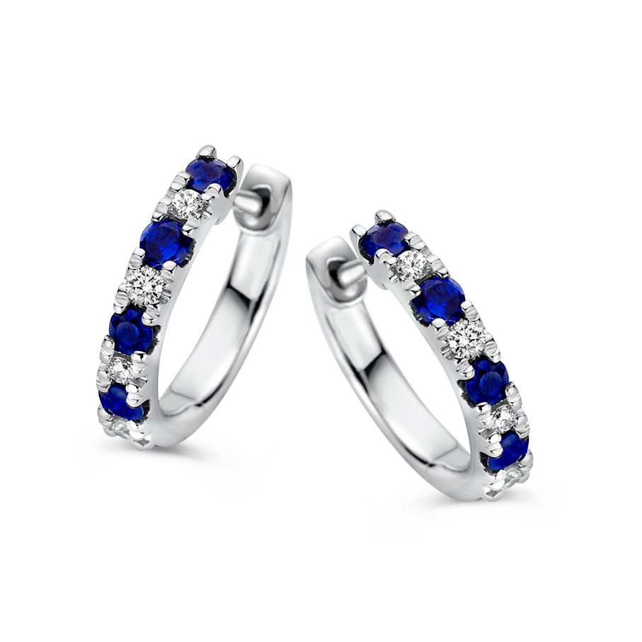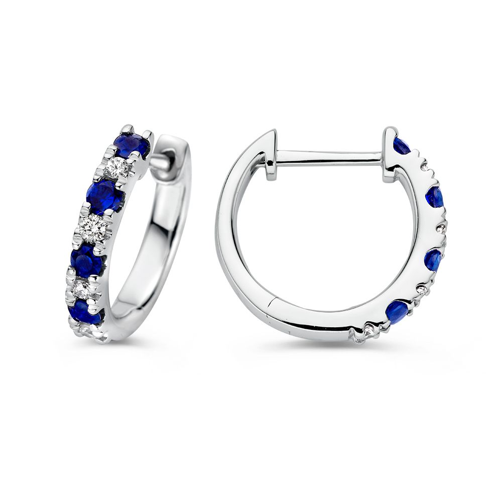 Oorringen witgoud briljant+saffier