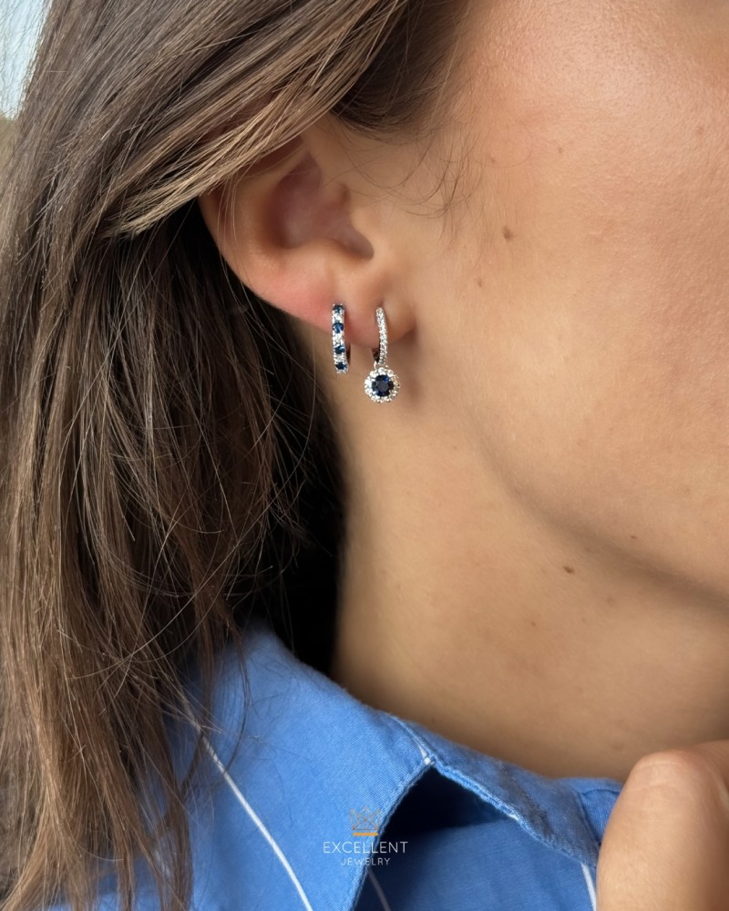 Combineer de Oorringen witgoud briljant+saffier