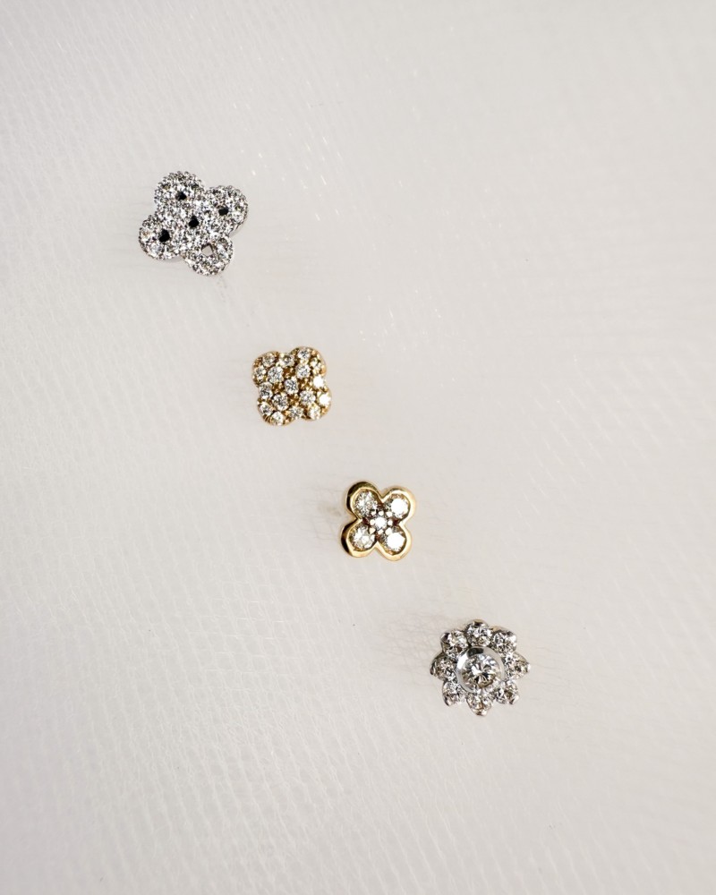 Geelgouden oorstekers in bloemvorm, gezet met diamant.