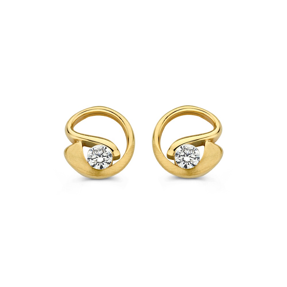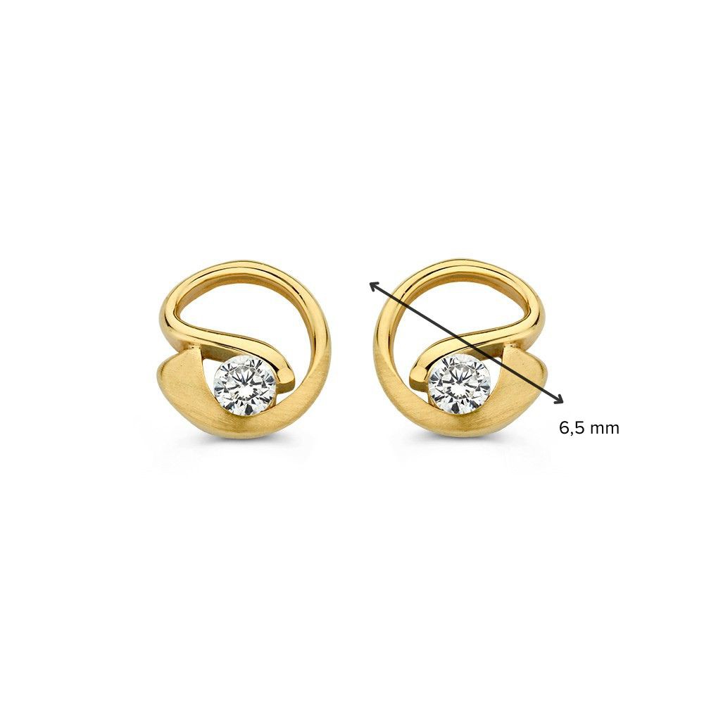 Geelgouden oorstekers mat/poli met een zirkonia.