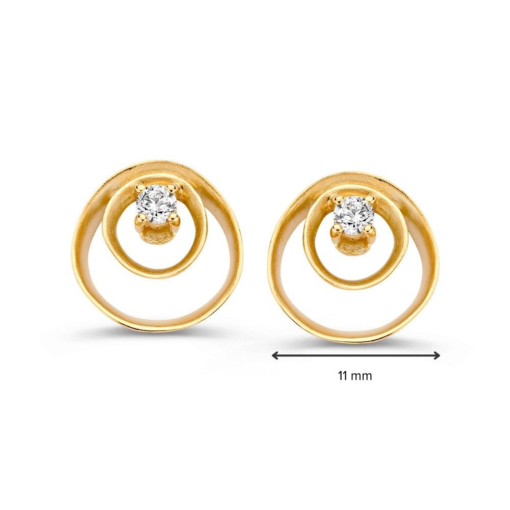 Speelse geelgouden oorstekers met organische vorm en gematteerd goud.
