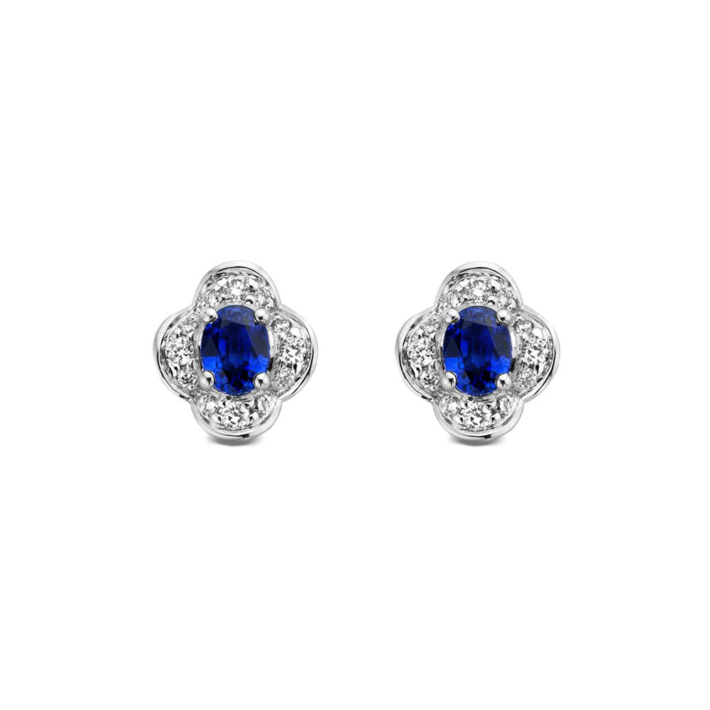 Oorstekers witgoud briljant+saffier