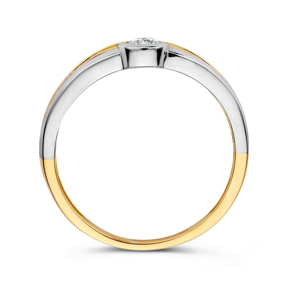 Bicolor wit- en geelgouden ring met zirkonia.