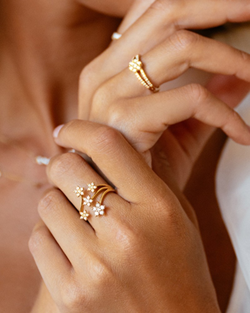 Schitterende ring met bijzonder ontwerp van diamanten sterren. Een plaatje aan de hand!