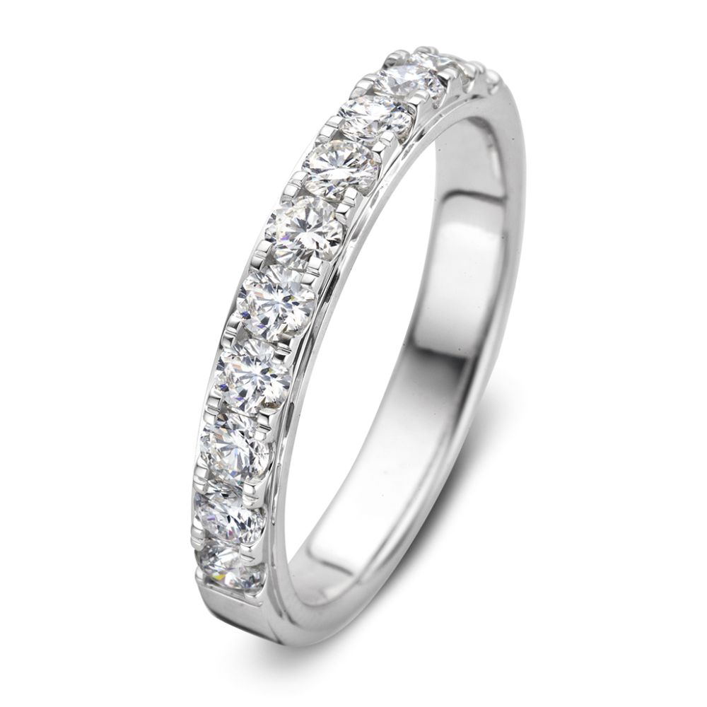 Witgouden rijring briljant in chatonzetting, half rondom gezet.